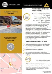 Η διαμόρφωση του τμήματος από την αρχή της οδού Ψαρομηλίγκων έως την συμβολή της με τις οδούς Μιχελιδάκη – Βουρβάχων ακολουθεί το ίδιο «μοτίβο» της υφιστάμενης μελέτης «Διαμόρφωση οδών άξονα, Δικαιοσύνης, Ίδης, Λ. Καλοκαιρινού» με τη χρήση φυσικών υλικών. Σύμφωνα με την μελέτη του έργου, θα διευκολυνθεί η κίνηση των πεζών, των παιδιών και των ατόμων με κινητικά προβλήματα, των οχημάτων πολιτικής προστασίας, θα αποτραπεί η παράνομη στάθμευση και θα ενοποιηθούν οι συγκεκριμένοι δρόμοι με την διαμόρφωση του κέντρου της πόλης που βρίσκεται ήδη σε εξέλιξη.