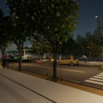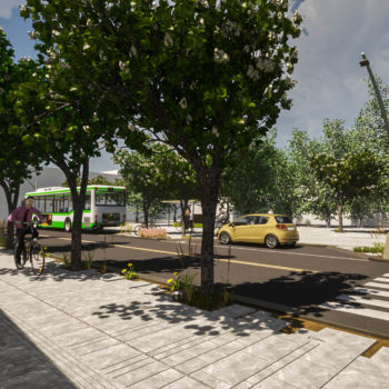 - Γραμμικές, υψηλές και χαμηλές φυτεύσεις στο μεγαλύτερο μήκος της εξωτερικής λωρίδας του πεζοδρομίου για οπτικό και λειτουργικό διαχωρισμό της κίνησης και της στάθμευσης δίπλα στον δρόμο.