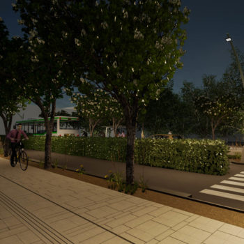 - Η λωρίδα ποδηλάτου επιστρώνεται με το ίδιο υλικό για οπτική ομοιομορφία και δυνατότητα εναλλακτικής χρήσης της ως πεζοδρόμιο.